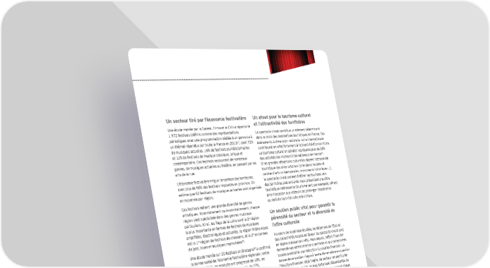 Un secteur tiré par l’économie festivalière Un atout pour le tourisme culturel Une étude menée par la Sacem, l’Irma et le CNV a répertorié et l’attractivité des territoires 1 972 festivals (déÕnis comme des représentations Le spectacle vivant constitue un élément déterminant périodiques avec une programmation dédiée à un genre ou à dans le choix des destinations touristiques en France. Ces 37 un thème) répandus sur toute la France en 2013 , dont 72 événements à dimension nationale, voire internationale de musiques actuelles, 16 de festivals pluridisciplinaires contribuent en effet fortement à l’attractivité d’un territoire. et 12 de festivals de musique classique, lyrique et Le tourisme culturel en général représente plus de 35 contemporaine. Ces festivals recouvrent de nombreux 40 des activités des visiteurs internationaux en France . genres, de musiques actuelles au théâtre, en passant par les Si les grandes attractions culturelles dopent l’attractivité arts de la rue. touristique des aires urbaines (principaux musées et L’économie festivalière irrigue l’ensemble des territoires, centres d’arts contemporains, monuments historiques...), avec plus de 90 des festivals implantés en province. On le spectacle vivant permet d’attirer les touristes vers estime que 62 festivals de musiques actuelles sont organisés des territoires plus enclavés mais présentant une offre en moyenne par région. touristique intéressante (tourisme vert par exemple), offrant ainsi l’occasion aux visiteurs de prolonger l’expérience Ces festivals mêlent une grande diversité de genres au-delà de l’activité culturelle initiale. artistiques. Volontairement ou involontairement, chaque région s’est spécialisée dans des genres musicaux Un soutien public vital pour garantir la e particuliers. Ainsi, les Pays de la Loire sont la 2 région pérennité du secteur et la diversité de la plus importante en termes de festivals de musiques l’offre culturelle ampliÕées, électroniques et actuelles, la région Rhône-Alpes est la 1re e région de festivals de chansons, et la 2 en termes Au cours de la période étudiée, les dépenses de l’État et 38 de jazz, blues et musiques improvisées . des collectivités locales en faveur du spectacle vivant sont 39 en légère croissance (+4). Mais depuis, l’effort Õnancier Une étude menée sur 20 festivals en Bretagne a conÕrmé la bonne santé de l’économie festivalière régionale : entre demandé aux administrations centrales et aux collectivités 2009 et 2012, les produits ont progressé de 18, les locales a entraîné une réduction du soutien Õnancier. La recettes propres (recettes de billetterie), de 27. baisse de ce soutien risque à terme de remettre en question Ces augmentations permettent de compenser la baisse des l’équilibre Õnancier, déjà fragile, du secteur, en particulier concours de l’État (-23 sur la période). au niveau des activités locales fortement dépendantes du concours public. Le « serrage de ceinture » imposé risque 50% des festivals sont concentrés dans 5 régions d’entraîner le développement d’une économie à deux vitesses, entre les petites productions et les leaders de secteurs. En 2013, si 60 des représentations ont compté Midi-Pyrénées moins de 200 entrées, les plus grandes salles (à plus de 96 1 500 entrées) ont représenté 58 de la billetterie et 46 de Île-de-France 180 la fréquentation. Cette tendance risque de s’accentuer dans Bretagne les années à venir. 106 La baisse du soutien public, parfois cumulée avec des difÕcultés Õnancières des structures, a un impact direct sur la diversité de l’offre de festivals : en 2014, 51 festivals ont Rhône-Alpes disparu et n’ont pas été compensés par les 44 créations. 165 PACA Ce solde négatif – qui peut être conjoncturel – démontre 151 un moindre renouvellement des festivals en France. Cette tendance négative reste à surveiller dans les années qui Source : ICNV, Sacem, Irma viennent41. 37 Sacem, Irma, CNV, La carte des festivals en France en 2013, avril 2014 38 Ibid 39 Indicateurs d’activités socio-économiques de 20 festivals bretons, étude 2009-2012, le collectif Fedds Bretagne, en partenariat avec le CNV 40 Memento du Tourisme, Édition 2014, DGE 41 S acem, Irma, CNV, La carte des festivals de France en 2014, avril 2015 Création sous tension 37