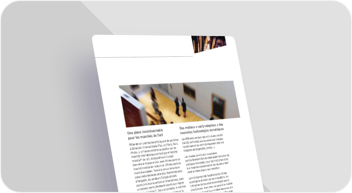 Une place incontournable Des métiers « early-adopters » des pour les marchés de l’art nouvelles technologies numériques Riche de son patrimoine artistique et de ses foires Les différents secteurs des arts visuels ont été à dimension internationale (Fiac, Art Paris, Paris très tôt confrontés aux nouvelles technologies Photo…), la France conforte sa position sur les numériques et les ont historiquement très vite e marchés internationaux en tant que 4 marché intégrées (photographie, presse...). mondial25 de l’art, et deuxième en Europe Les musées constituent un exemple (derrière le Royaume-Uni), avec 6 des parts du particulièrement fort de cette expérimentation de marché mondial (en valeur), et 19 des parts du pratiques innovantes, pour des institutions dont marché européen. Face à la concurrence de la le « mode de consommation des œuvres » était place londonienne et celle plus récente des pays resté le même depuis leur fondation. émergents, les vendeurs français doivent poursuivre leur ouverture à l’international, dans L’enrichissement de l’expérience du visiteur un secteur particulièrement soumis aux risques constitue le leitmotiv de ces innovations, via 26 de délocalisation . Dans ce contexte, le maintien l’utilisation de nouvelles technologies web et de la France au plus haut niveau repose sur la smartphones. Avec elles, on passe d’un modèle stabilité de l’environnement juridique et Õscal (par relativement passif à un modèle beaucoup plus opposition aux débats sur l’extension de l’ISF aux interactif qui tente de redéÕnir la relation avec œuvres d’art) et sur la capacité à proposer une le public. Les réseaux sociaux et les systèmes offre de services de qualité aÕn d’attirer les technologiques ont permis aux musées de fournir amateurs internationaux. des informations complémentaires en temps réel au visiteur. Des dispositifs numériques leur Un secteur transverse, offrent également la possibilité de bénéÕcier de dont les compétences sont nouvelles expériences, par exemple sur le site recherchées et mobilisées dans du Louvre, les visiteurs peuvent emprunter des d’autres ICC galeries virtuelles et admirer les chefs-d’œuvre directement sur Internet ou via l’application. La diversité des métiers au sein des arts visuels font la richesse du secteur. Ses savoir-faire sont recherchés dans de nombreuses autres industries, culturelles notamment, mais pas seulement. Ainsi, les métiers de la photographie sont particulièrement mobilisés dans le secteur de l’imprimé, de la presse, des livres et des magazines. D’autre part, le travail de l’image et des graphismes constitue un savoir-faire très recherché par les plateformes numériques (web design et visualisation de données). 25 TEFAF Art Market Report, 2014 26 Le marché de l’art contemporain, Rapport annuel 2013, ArtPrice Création sous tension 25