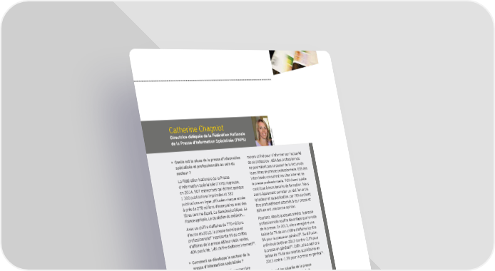 Catherine Chagniot Directrice déléguée de la Fédération Nationale de la Presse d’Information Spécialisée (FNPS) ournellec © M. T • Quelle est la place de la presse d’information moyen utilisé pour s’informer sur l’actualité spécialisée et professionnelle au sein du de sa profession : 65 des professionnels secteur ? ne pourraient pas se passer de la lecture de La Fédération Nationale de la Presse leurs titres de presse professionnelle. 85 des d’Information Spécialisée (FNPS) regroupe, interviewés consultent les sites Internet de en 2014, 507 entreprises qui éditent quelque la presse professionnelle. 76 disent qu’elle 1 300 publications imprimées et 332 contribue à leurs besoins de formation. Nous publications en ligne, diffusées chaque année avons également pu noter un réel lien entre à près de 278 millions d’exemplaires avec des le lecteur et sa publication, car 78 se disent titres comme Esprit, La Semaine juridique, La être profondément attachés à leur presse et France agricole, Le Quotidien du médecin... 88 en ont une bonne opinion. Avec un chiffre d’affaires de 770 millions Pourtant, depuis quelques années, la presse d’euros en 2012, la presse technique et professionnelle souffre davantage que le reste 87 de la presse. En 2013, elle a enregistré une professionnelle représente 9 du chiffre baisse de 7 de son chiffre d’affaires (contre d’affaires de la presse éditeur (46 ventes, 89 88 5 pour la presse en général) . Sa diffusion 40 publicité, 14 chiffre d’affaires Internet) . a diminué de 6 en 2013 (contre -2,5 pour 90 • Comment se développe le secteur de la la presse en général) . EnÕn, elle a subi une presse d’information spécialisée ? baisse de 7 de ses recettes publicitaires en 91 Depuis 10 ans, la publicité commerciale 2013 contre -1,5 pour la presse en général . régresse, tandis que les recettes • Qui sont les salariés de la presse d’abonnements augmentent. En 2012, les professionnelle et spécialisée ? ventes par abonnements ont même constitué La presse professionnelle et spécialisée la part la plus importante des recettes, ce qui compte 13 347 salariés (16,5 des salariés de s’explique, entre autres, par la place qu’occupe la presse) dont 4 800 journalistes disposant la presse professionnelle et spécialisée auprès d’une carte de journaliste (soit 19 des du lectorat français. Elle touche près de 44 journalistes de la presse écrite et 13 du total d’entre eux. des journalistes). C’est la presse spécialisée qui D’après une étude réalisée en 2014 par l’IFOP, rassemble le plus de salariés après la presse la presse professionnelle est perçue comme magazine (30) et la presse quotidienne étant une presse crédible et Õable par 84 des 92 régionale (24) . personnes interrogées. Elle reste le principal 87 La FNPS rassemble la presse technique et professionnelle mais aussi la presse sociale et une partie de la presse spécialisée grand public. 88 DGMIC Enquête rapide 2012 89 DGMIC Enquête rapide 2013 90 OJD – OfÕce de justiÕcation de la diffusion 91 Kantar media ad intelligence 92 Observatoire des métiers de la presse – Cartes des journalistes professionnels en 2012 Création sous tension 77