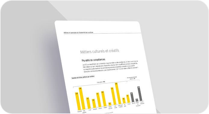 Métiers et parcours de l’économie de la culture Métiers culturels et créatifs Pluralité de compétences Les ICC se caractérisent par un éventail unique de métiers et de compétences. Au total, ce sont plus de 982 métiers qui sont recensés dans l’économie culturelle. Parmi les différents secteurs comptabilisés, la production audiovisuelle et les activités de graphisme et de design présentent la plus grande diversité en termes de professions, avec respectivement 150121 122 et 145 métiers différents recensés . FgeZj]\]Ô[`]ke†la]jkhYjk][l]mj Total assurance, banques, Total culture : 982 sécurité : 195 145 150 115 121 103 106 97 74 69 59 57 40 21 20 Publicité Info- Livre Musique Cinéma Théâtre Bande Arts Audiovisuel Jeu Presse Sécurité Métiers Finance graphie, dessinée visuels TV/Radio vidéo de & Banques Design l’assurance Source : Le Guide des métiers.com, Observatoire des métiers de la publicité (hors annuaires) Ces métiers sont répartis en trois catégories : • Les métiers de création, comprenant les auteurs, les compositeurs, les plasticiens, les comédiens, les réalisateurs, les chorégraphes, les concepteurs, les metteurs en scène, les interprètes ; • Les métiers de production, qui accompagnent l’artiste du développement de l’œuvre à sa réalisation, correspondant aux éditeurs, producteurs, post-producteurs et professionnels techniques intervenant dans la production ; • Les métiers de diffusion, permettant de faciliter la rencontre de l’œuvre avec le public, tels que les métiers de distribution des œuvres, de gestion des salles de spectacle, des musées ou des galeries d’art. 121 Rapport d’information en conclusion des travaux de la mission sur les conditions d’emploi dans les métiers artistiques, présenté par M. Gille, Assemblée nationale, 2013 122 Selon le guide des métiers de l’ONISEP e 106 2 Panorama de l’économie de la culture et de la création en France