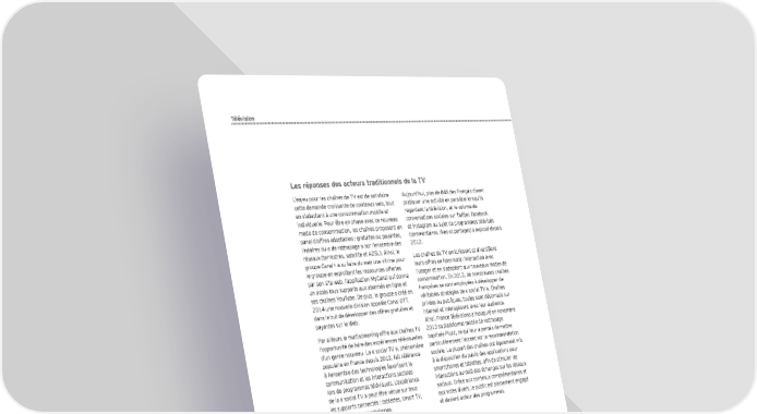 Télévision Les réponses des acteurs traditionnels de la TV L’enjeu pour les chaînes de TV est de satisfaire Aujourd’hui, plus de 84 des Français disent cette demande croissante de contenus web, tout pratiquer une activité en parallèle lorsqu’ils en s’adaptant à une consommation mobile et regardent la télévision, et le volume de individuelle. Pour être en phase avec ce nouveau conversations sociales sur Twitter, Facebook mode de consommation, les chaînes proposent un et Instagram au sujet de programmes télévisés panel d’offres adaptables : gratuites ou payantes, (commentaires, likes et partages) a explosé depuis linéaires ou « de rattrapage » sur l’ensemble des 2012. réseaux (terrestres, satellite et ADSL). Ainsi, le Les chaînes de TV enrichissent et diversiÕent groupe Canal+ a su faire du web une vitrine pour leurs offres en favorisant l’interaction avec le groupe en exploitant les ressources offertes l’usager et en s’adaptant aux nouveaux modes de par son site web, l’application MyCanal qui donne consommation. En 2012, de nombreuses chaînes un accès tous supports aux abonnés en ligne et françaises se sont employées à développer de ses chaînes YouTube. De plus, le groupe a créé en véritables stratégies de « social TV ». Chaînes 2014 une nouvelle division appelée Canal OTT, privées ou publiques, toutes sont désormais sur dans le but de développer des offres gratuites et Internet et interagissent avec leur audience. payantes sur le Web. Ainsi, France Télévisions a inauguré en novembre Par ailleurs le multiscreening offre aux chaînes TV 2013 sa plateforme mobile de rattrapage l’opportunité de faire des expériences télévisuelles baptisée Pluzz, ce qui leur a permis de mettre d’un genre nouveau. La « social TV », phénomène particulièrement l’accent sur la recommandation populaire en France depuis 2012, fait référence sociale. La plupart des chaînes ont également mis à l’ensemble des technologies favorisant la à la disposition du public des applications pour communication et les interactions sociales smartphones et tablettes, aÕn de stimuler les lors de programmes télévisuels. L’expérience interactions au-delà des échanges sur les réseaux de la « social TV » peut être vécue sur tous sociaux. Grâce aux contenus complémentaires et les supports connectés : tablettes, smart TV, aux votes divers, le public est pleinement engagé ordinateurs ou smartphones. et devient acteur des programmes. e 54 2 Panorama de l’économie de la culture et de la création en France