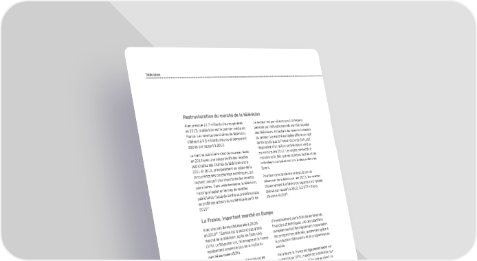 Télévision Restructuration du marché de la télévision Avec presque 12,7 milliards d’euros générés Le secteur est par ailleurs aussi fortement en 2013, la télévision est le premier média en pénalisé par l’effondrement du marché mondial France. Les revenus des chaînes de télévision des téléviseurs, impactant les revenus connexes s’élèvent à 9,5 milliards d’euros et demeurent du secteur. Le marché européen afÕche un repli stables par rapport à 2012. de 5 tandis que la France recule de 36, soit Le marché publicitaire s’est de nouveau tassé l’équivalent d’un million de téléviseurs vendus en 2013 avec une baisse de 8 des recettes en moins qu’en 2012. Les objets connectés à publicitaires des chaînes de télévision entre moindre coût, tels que les tablettes tactiles et les 2011 et 2013, principalement en raison de la ordinateurs portables ont pris le dessus dans les concurrence des plateformes numériques, qui foyers. captent une part plus importante des recettes Pourtant cette tendance ne traduit pas un publicitaires. Dans cette tendance, la télévision, désamour de la télévision : en 2013, les recettes historique leader en termes de recettes d’abonnement à la télévision payante sont restées publicitaires risque de perdre sa première place stables par rapport à 2012, à 2 977 millions 48 au proÕt des acteurs du numérique à partir de d’euros (+0,2) . 201547. La France, important marché en Europe Avec une part de marché évaluée à 29,2 d’investissement par le biais de partenariats 49 Õnanciers et techniques. Les coproductions en 2010 , l’Europe est le second plus grand marché de la télévision, après les États-Unis européennes facilitent également l’exportation (37). Le Royaume-Uni, l’Allemagne et la France des programmes télévisés, notamment grâce à représentent ensemble plus de la moitié du la production d’émissions et de programmes en marché européen (53). anglais. Le marché européen de la télévision est de Par ailleurs, la France est également leader sur plus en plus intégré. Le développement de la le marché de l’IPTV, marché de la télévision sur coproduction de contenus audiovisuels entre Internet qui regroupe la télévision en direct, la pays de l’Union européenne a fait ses preuves vidéo à la demande, le jeu à la demande et la au cours des dernières années, principalement « télévision de rattrapage ». Elle représente 23 pour la Õction et l’animation. Cela permet aux du marché global, devant la Chine (16) et les 50 marchés nationaux de mutualiser les coûts États-Unis (16) . Évolution des revenus des chaînes de télévision entre 2011 et 2013 En milliards d’euros 9,84 9,51 Revenus des abonnements des chaînes de télévision 51 Dépenses publiques pour l’audiovisuel public 3,36 3,22 Revenus publicitaires des chaînes de télévision 2,98 3,07 47 Magna Global, Advertisig Forecasts, 2015 48 Centre National du Cinéma et de l’Image animée, l’économie de la télévision (2003-2012) 49 IDATE, World Television Market, 2011 3,5 3,22 50 European Commission, Green paper on the online distribution of audiovisual works in the European Union : opportunities and challenges towards a digital single 2011 2013 market, 2011 51 Crédits consommés de France Télévisions, d’Arte, de l’Action Audiovisuelle Extérieure et de l’INA (comptes 841, 842, 844 et 845) ainsi que la dotation Source : Panorama de l’économie de la culture et de la création en France, EY, 2015 compensatoire France Télévisions e 50 2 Panorama de l’économie de la culture et de la création en France