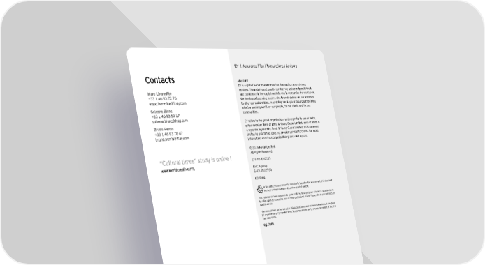 E Y | Assu rance | T ax | T ransact ions | Advisory ;ontacts 9bout =Q E Y is a glob al leader in assu rance, t ax , t ransact ion and advisory M arc L hermitte services. T h e insigh t s and q u alit y services w e deliver h elp b u ild t ru st + 3 3 1 4 6 9 3 7 2 7 6 and confidence in t h e capit al mark et s and in economies t h e w orld over. marc. lh ermit t e@ fr. ey . com W e develop ou t st anding leaders w h o t eam t o deliver on ou r promises t o all of ou r st ak eh olders. In so doing, w e play a crit ical role in b u ilding S olenne B lanc a b et t er w ork ing w orld for ou r people, for ou r client s and for ou r + 3 3 1 4 6 9 3 5 9 1 7 commu nit ies. solenne. b lanc@ fr. ey . com E Y refers t o t h e glob al organiz at ion, and may refer t o one or more, B runo P errin of t h e memb er firms of E rnst & Y ou ng G lob al Limit ed, each of w h ich is + 3 3 1 4 6 9 3 7 6 4 7 a separat e legal ent it y . E rnst & Y ou ng G lob al Limit ed, a U K company b ru no. perrin@ fr. ey . com limit ed b y gu arant ee, does not provide services t o client s. F or more informat ion ab ou t ou r organiz at ion, please visit ey . com. © 2 0 1 5 E Y G M Limit ed. É;udturad tieesÊ stu\q is ondine All R igh t s R eserved. E Y G no. E A0 1 0 5 ooo&oord\creatine&or_ B M C Agency B ACS 1 0 0 2 9 6 4 E D N one In line w it h E Y ’s commit ment t o minimiz e it s impact on t h e environment , t h is docu ment h as b een print ed on paper w it h a h igh recy cled cont ent . T h is mat erial h as b een prepared for general informat ional pu rposes only and is not int ended t o b e relied u pon as accou nt ing, t ax , or ot h er professional advice. P lease refer t o y ou r advisors for specific advice. T h e view s of t h ird part ies set ou t in t h is pu b licat ion are not necessarily t h e view s of t h e glob al E Y organiz at ion or it s memb er firms. M oreover, t h ey sh ou ld b e seen in t h e cont ex t of t h e t ime t h ey w ere made. eq&coe
