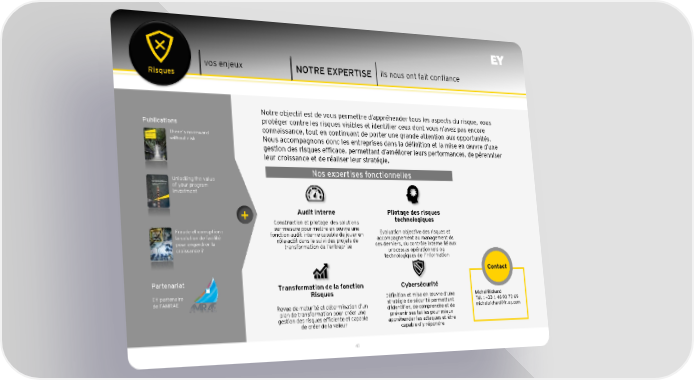 vos enjeux NOTRE EXPERTISE ils nous ont fait confiance Risques Notre objectif est de vous permettre d’appréhender tous les aspects du risque, vous Publications protéger contre les risques visibles et identifier ceux dont vous n’avez pas encore There’s no reward connaissance, tout en continuant de porter une grande attention aux opportunités. without risk Nous accompagnons donc les entreprises dans la définition et la mise en œuvre d’une gestion des risques efficace, permettant d’améliorer leurs performances, de pérenniser leur croissance et de réaliser leur stratégie. Nos expertises fonctionnelles Unlocking the value of your program investment + Audit interne Pilotage des risques Construction et pilotage des solutions technologiques Fraude et corruption : sur-mesure pour mettre en œuvre une Evaluation objective des risques et la solution de facilité fonction audit interne capable de jouer un accompagnement au management de pour engendrer la rôle actif dans le suivi des projets de ces derniers, du contrôle interne lié aux croissance ? transformation de l’entreprise processus opérationnels ou technologiques de l’information Contact Partenariat Transformation de la fonction Cybersécurité EY partenaire Risques Michel Richard de l’AMRAE Définition et mise en œuvre d’une Tél. : +33 1 46 93 72 69 stratégie de sécurité permettant Revue de maturité et détermination d’un d’identifier, de comprendre et de [email protected] plan de transformation pour créer une prévenir ses failles pour mieux gestion des risques efficiente et capable appréhender les attaques et être de créer de la valeur capable d’y répondre 43