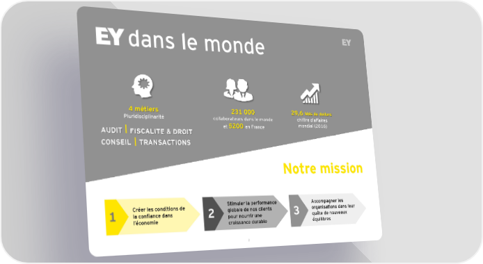 dans le monde 4 métiers 231 000 29,6 Mds de dollars Pluridisciplinarité collaborateurs dans le monde chiffre d’affaires et 5200 en France mondial (2016) AUDIT FISCALITE & DROIT CONSEIL TRANSACTIONS Notre mission Créer les conditions de Stimuler la performance Accompagner les 1 la confiance dans 2 globale de nos clients 3 organisations dans leur pour nourrir une quête de nouveaux l’économie croissance durable équilibres 2