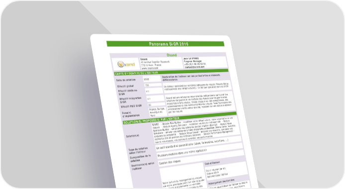 Panorama SIGR 2016 Oxand Oxand Jean LE DROGO 49 avenue Franklin Roosevelt Program Manager 77210 Avon, France +33 (0)1 60 39 52 51 www.oxand.com [email protected] CARTE D’IDENTITE DE L’EDITEUR Date de création 2002 Déclaration de l’éditeur sur ses particularités et éléments différenciants Effectif global 150 Un éditeur spécialisé sur certaines catégories de risques (Risques liés au Effectif dédié au n/r vieillissement des infrastructures) / Un éditeur spécialisé dans les SIGR SIGR Effectif intégration n/r Oxand est une entreprise internationale indépendante qui fournit des SIGR solutions de gestion et de maîtrise des risques pour les patrimoines Effectif R&D SIGR 20 industriels à forts enjeux. Oxand s’appuie sur des compétences, des France, Europe, connaissances et des outils propriétaires uniques. Nous fournissons des Zone(s) Amerique du informations à forte valeur ajoutée, reposant sur une aide à la décision d’implantation Nord par les risques. SOLUTION(S) PROPOSEE(S) PAR L’EDITEUR SIMEO - Module Risk Builder : modéliser votre infrastructure, votre organisation et vos risques - Module Ageing Simulator : modéliser vos lois de vieillissement - Module Scenario Builder : construire des scénarios de plan d'action alternatif - Module Value Solution(s) Simulator : simuler vos scénarios à l'aide d'approche probabiliste (Monte Carlo), faire des analyses de sensibilité - Module Value Viewer : analyser vos résultats, comparer vos scénarios afin de prendre les meilleurs décisions - Module Performance Management : suivre vos risques, vos actions et contrôler vos performances Type de solution Un outil standard et paramétrable (labels, formulaires, workflows, ...) selon l’éditeur Composition de la Plusieurs modules dans une même application solution Dominante(s) selon Gestion des risques l’éditeur Club utilisateur Oui (1 réunion par an) Notre culture du management du risques Créé en 2016 est notre principale point fort afin de guider Administré par l’éditeur Points forts selon nos clients à implémenter un véritable l’éditeur management des risques projets ou des Hébergement des données risques à l'échelle de l'entreprise. Chez un sous-traitant de l’éditeur ou chez le client (Pour l'hébergement, nous faisons appel à un sous traitant disposant de datacenter adaptés et d'un haut niveau de sécurité et de confidentialité.) Nombre de projets Dans les 12 derniers mois Depuis la sortie de la solution d’implémentation En France 1 En France 2 déclarés A l’étranger 2 A l’étranger 10 Secteurs d’activité Assurance (10%), Industries et services Nombre moyen des projets (70%), Secteur public (20%) d’utilisateurs par solution De 6 à 50 implémentés Couverture des axes fonctionnels* Couverture des axes techniques* (*) Les résultats retranscrits sur cette fiche sont conformes aux réponses fournies par l’éditeur Panorama SIGR 2016 – Copyright © 2016 AMRAE, en partenariat avec EY 59 / 77