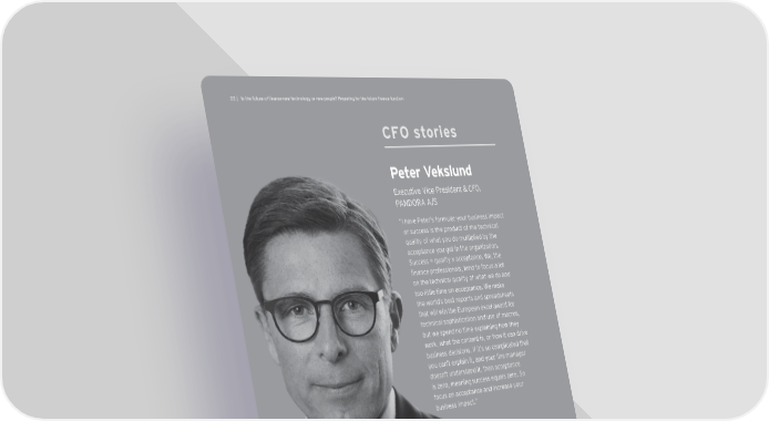 22 | Akl`]^mlmj]g^ÕfYf[]f]ol][`fgdg_qgjf]oh]ghd]7Hj]hYjaf_^gjl`]^mlmj]ÕfYf[]^mf[lagf CFO stories H]l]jN]ckdmf\ Executive Vice President & CFO, PANDORA A/S “ I have Peter’s formula: your business impact or success is the product of the technical quality of what you do multiplied by the acceptance you get in the organization. Success = quality x acceptance. We, the finance professionals, tend to focus a lot on the technical quality of what we do and too little time on acceptance. We make the world’s best reports and spreadsheets that will win the European excel award for technical sophistication and use of macros, but we spend no time explaining how they work, what the content is, or how it can drive business decisions. If it’s so complicated that you can’t explain it, and your line manager doesn’t understand it, then acceptance is zero, meaning success equals zero. So focus on acceptance and increase your business impact.”