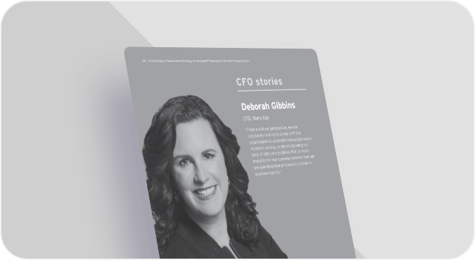 *(t Akl`]^mlmj]g^ÕfYf[]f]ol][`fgdg_qgjf]oh]ghd]7Hj]hYjaf_^gjl`]^mlmj]ÕfYf[]^mf[lagf CFO stories Deborah Gibbins CFO, Mary Kay “ From a skill-set perspective, we are constantly looking to slowly shift the organization to automate manual processes. Analytics are key, so we are growing our base of skills and positions that do more analytics for our business partners than we are spending time processing invoices or expense reports.”