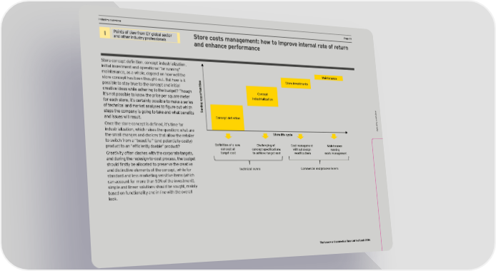 DCF and vIndustry oaluation pverview arameters HPa_e .1age .1 I Points of view from EY global sector Store costs management: how to improve internal rate of return and other industry professionals and enhance performance Store concept definition, concept indmstrialiration, initial investment and operational “or running” Maintenance maintenance, as a whole, depend on how well the Store investments store concept has been thought out. But how is it s ie possible to stay true to the concept and initial it n u creative ideas while adhering to the budget? Though t Concept r o it’s not possible to cnoo the price per simare meter p industrialization p for each store, it’s certainly possible to make a series o g in w of technical and marcet analqses to figmre omt ohich v a steps the companq is going to tace and ohat benefits S ervie v and issues will result. Concept definition try o Once the store concept is defined, it’s time for Indus indmstrialiration, ohich raises the imestion2 ohat are Store life cycle the small changes and choices that allow the retailer to switch from a “beautiful” (and potentially costly) prodmct to an Éefficientlq doableÊ prodmct7 Definition of a new Challenging of Cost management Maintenance concept at cgncepl specificaligns without design running Creativity often clashes with the corporate targets, target cost to achieve target cost egdificaligns costs management and during the redesign-to-cost process, the budget shomld firstlq be allocated to preserne the creatine and distinctive elements of the concept, while for Technical levers Commercial and process levers standard and less marketing sensitive items (which can account for more than 50% of the investment), simple and linear solutions should be sought, mainly based on functionality and in line with the overall look. The luxury and cosmetics financial factbook 2016