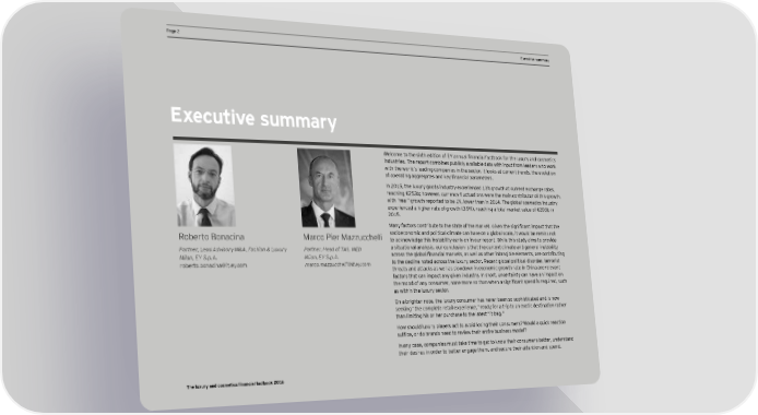 Page 2 Executive summary Executive summary Oelcome to the sixth edition of EY annmal financial factbooc for the lmxmrq and cosmetics industries. The report combines publicly available data with input from leaders who work with the world’s leading companies in the sector. It looks at current trends, the evolution of operating aggregates and ceq financial parameters. In 2015, the luxury goods industry experienced 13% growth at current exchange rates, reaching Ò*-+b3 hooener, cmrrencq Ömctmations oere the main contribmtor of this grooth, with “real” growth reported to be 1%, lower than in 2014. The global cosmetics industry experienced a higher rate of growth (3.9%), reaching a total market value of €203b in 2015. Eanq factors contribmte to the state of the marcet. ?inen the significant impact that the Roberto Bonacina Marco Pier Mazzucchelli socioeconomic and political climate can have on a global scale, it would be remiss not to acknowledge this instability early on in our report. While this study aims to provide Partner, Lead Advisory M&A, Fashion & Luxury Partner, Head of TAS, MED a situational analysis, our conclusion is that the current climate and general instability Milan, EY S.p.A. Milan, EY S.p.A. across the global financial marcets, as oell as other intangible elements, are contribmting [email protected] [email protected] to the decline noted across the luxury sector. Recent global political disorder, terrorist threats and attacks as well as slowdown in economic growth rate in China are relevant factors that can impact any given industry. In short, uncertainty can have an impact on the mood of anq consmmer, none more so than ohen a significant spend is reimired, smch as within the luxury sector. On a brighter note, the luxury consumer has never been so sophisticated and is now seeking “the complete retail experience,“ ready for a trip to an exotic destination rather than limiting his or her purchase to the latest “it-bag.“ @oo shomld lmxmrq plaqers act to anoid losing their consmmers7 Oomld a imicc reaction smffice, or do brands need to renieo their entire bmsiness model7 In any case, companies must take time to get to know their consumers better, understand their desires in order to better engage them, and secure their attention and spend. The luxury and cosmetics financial factbook 2016