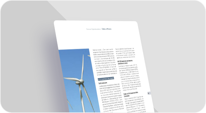 Focus sur 8 grands secteurs - Éolien offshore (Méditerranée). L’État s’est montré Dans le cadre de l’appel à projets, il se exigeant en fixant des seuils de puissance positionne sur les zones de Gruissan élevés : les parcs devront en effet compter et Leucate. À Port-La-Nouvelle, base entre 3 et 6 éoliennes de 5 MW unitaires arrière de son projet, il a ouvert une minimum. Une enveloppe de 150 M€ agence pour sensibiliser les riverains. sera répartie entre les lauréats au titre EDF EN passe les partenaires de l’aide au développement. S’ajoutera possibles en revue une aide au fonctionnement comprise entre 150 et 275 €/MWh. A l’heure du Candidat en Méditerranée, EDF EN bouclage de ce Panorama, certfains consulte ses partenaires potentiels, après candidats n’avaient pas souhaité répondre avoir lancé en 2015 deux appels d’offres à nos demandes sur leur candidature. européens pour la fabrication d’une turbine et d’un flotteur. La sélection est 3.1 Les porteurs de projets prévue d’ici à la fin du premier trimestre. L’énergéticien travaille déjà depuis 2012 Eolfi mise gros sur un projet pilote au large de Port- Le développeur et producteur d’électricité Saint-Louis-du-Rhône, dans le golfe verte Eolfi est engagé dans l’éolien flottant de Fos-sur-Mer, Provence Grand Large depuis 2011 avec son projet d’éolienne (ex-Vertimed), mais sans ses partenaires à axe vertical Spinfloat. Il se présente initiaux, Technip et Nénuphar. sur les zones méditerranéennes et Engie, du Portugal aux côtes atlantique en panachant trois technologies françaises de flotteurs – développées par Gusto 43 MSC/Saipem, DCNS et l’IFPEN –, ainsi Depuis novembre 2015, Engie fait ses que les turbines d’Alstom/GE, Adwen et premiers pas dans l’éolien flottant... au Nénuphar/Spinfloat. L’entreprise envisage Portugal. Le groupe a pris une participation d’installer la base arrière de ses parcs dans le projet WindFloat Atlantic, aux à Fos-sur-Mer (Bouches-du-Rhône) et côtés de Mitsubishi, EDP Renewables, Brest (Finistère). Repsol et Principle Power. Il assure que sa candidature à l’appel à projets Arkolia Énergies vise Gruissan français se fera dans la continuité de Installé près de Montpellier, ce développeur son expérience portugaise. multi-énergies a choisi de se concentrer exclusivement sur la zone de Gruissan 3.2 Les technologies en présence avec ses partenaires Saipem et Matière. Le consortium s’appuie sur le tri- Alstom/GE et DCNS, partenaires flotteur semi-submersible développé sur un système intégré par le néerlandais Gusto MSC, dont semi-submersible Saipem détient l’exclusivité en France, Les deux groupes ont signé en octobre et les éoliennes Senvion de 6,15 MW. 2014 un accord pour le développement L’assemblage est prévu sur la zone d’un système intégré d’éolienne flottante portuaire de Port-la-Nouvelle, dans l’Aude. semi-submersible de 6 MW. Le tandem est Quadran s’installe à Port-la-Nouvelle très mobilisé au Groix où il compte installer un premier exemplaire en 2017-2018, Depuis deux ans, le développeur et soutenu à hauteur de 6 M€ par l’Ademe2 exploitant multi-énergies languedocien . Début mars 2016, DCNS et Alstom/GE travaille sur un projet de parc éolien n’avaient pas déclaré d’exploitant pour se flottant en Méditerranée, baptisé EolMed. positionner en Atlantique. En revanche, À long terme, Quadran vise la construction Eolfi les a sélectionnés pour candidater d’une ferme commerciale de 500 MW. en Méditerranée (lire ci-dessus). 2 Dans le cadre de l’appel à manifestations d’intérêt « Énergies marines renouvelables – Briques et démonstrateurs ». Panorama des Cleantech 2016