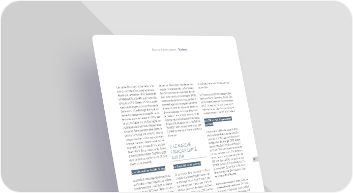 Focus sur 8 grands secteurs - Stockage Les capacités « behind the meter » (en devrait se développer rapidement au ce coût peut rarement être couvert par aval du compteur) ont quadruplé outre- pays de l’Energiewende. Le fournisseur les ventes ». Atlantique l’année dernière, passant de Sonnen annonçait en novembre dernier 6,9 MW en 2014 à 35 MW, selon la société avoir ainsi vendu en Allemagne 8 000 En France, les projets se développent donc d’études GTM Research. Ce succès batteries résidentielles intelligentes et dans les Drom-Com et en Corse. Des n’est d’ailleurs pas circonscrit aux seuls ouvert 60 agences. Le pays en est même territoires dits Zones non interconnectées États-Unis. « Le stockage distribué, en à tester la mise en réseau de batteries (ZNI) : l’énergie y est plus chère qu’en résidentiel, mais aussi dans les bâtiments domestiques pour contribuer à équilibrer métropole, où l’électricité d’origine tertiaires a pris son essor en 2015, que le réseau. Le « project swarm h» de nucléaire reste bon marché pour l’instant. ce soit en Californie, en Allemagne, en Caterva met ainsi à disposition du réseau Australie ou dans les micro-réseaux ruraux d’électricité 65 batteries Li-Ion Saft de Les ZNI en voie d’équipement africains. Dans les pays développés, le 20 kW/21 kWh, reliées entre elles, soit accéléré vecteur principal est la fierté, pour le 1,3 MW de réserve primaire potentielle consommateur, d’être autonome en d’énergie. C’est la raison d’être de l’appel d’offres énergie. La valeur économique, sur ce photovoltaïque et stockage dans les ZNI, segment, vient d’apparaître3 lancé en mai 2015 par la Commission », analyse Jean-Marc Bally, associé du fonds 2. LE MARCHÉ de régulation de l’énergie (CRE), et dont d’investissement Aster Capital engagé FRANÇAIS LIMITÉ les résultats devraient être connus d’ici dans la start-up californienne Off Grid AUX ZNI au 22 avril 2016. Le dispositif a remporté Electric (lire encadré). un succès historique : 217 dossiers reçus, pour une puissance totale de L’année 2016 au double de 2015 Le dispositif reste onéreux 356 MW dont la CRE ne gardera que 50 MW. Sur ces 217 candidatures, 76 61 La percée du stockage résidentiel se fait Et la France dans tout cela ? « Pour se trouvent en Corse, 50 à La Réunion, sur fond d’un marché global, lui-même l’instant et à l’exception de l’outre-mer, 38 en Guadeloupe, 29 en Guyane, 18 en en effervescence : + 243 % de puissance le stockage est un sujet d’export pour Martinique et 6 à Mayotte. installée en 2015 aux États-Unis en les entreprises françaises, tranche amont et en aval du compteur, le volume Michael Salomon, fondateur de Clean Avant même cet appel d’offres, plusieurs partant de 65 MW en 2014 pour bondir Horizon. Pour obtenir un « LCOE » correct projets s’étaient matérialisés. En Corse, à 221 MW l’année dernière4 (levelized cost of energy, somme actualisée le consortium Schneider Electric et Saft . des coûts énergétiques globaux) sur le a ainsi été choisi par le développeur et 2016 devrait produire un millésime à marché français, le prix des panneaux exploitant Langa pour la réalisation de nouveau remarquable. Les observations photovoltaïques et celui des batteries deux installations photovoltaïques d’1 de IHS annoncent 900 MW de puissance doit encore diminuer. Mais un prix plus MW chacune, associées à 1 MWh de installée dans le monde, soit deux fois élevé du carbone pourrait accélérer le stockage sur batteries. À La Réunion, Jean- plus qu’en 2015 ; 45 % seraient situés mouvement ». Bernard Lévy, PDG d’EDF, concepteur aux États-Unis et 20 % au Japon. d’une solution de stockage de 1 MW 6 à Saint-André, a annoncé en février Selon une étude de IHS , les prix des En Europe, trois pays sortent du lot, batteries et tout particulièrement ceux des 2016 que l’île allait franchir pour la le Royaume-Uni, l’Italie et surtout accumulateurs lithium-ion ont chuté de première fois le seuil de 30 % d’injection l’Allemagne ; 20 000 systèmes en aval 53 % entre 2012 et 2015. Et IHS anticipe instantanée d’électricité intermittente. du compteur y ont déjà été installés, une baisse de 50 % d’ici à 2019. Mais pour La Réunion bénéficie aussi de la production surtout chez les particuliers, grâce à un l’instant, et comme le calcule Michael de la centrale solaire Bardzour, développée tarif motivant et fortement subventionné. Salomon, « une batterie vendue 500 000 € par Akuo Energy et couplée à un système Selon une étude du cabinet spécialisé pour 5 000 cycles, cela fait 100 € euros de batteries lithium-ion Saft de 9 MWh. Clean Horizon5 pour chaque cycle. À l’heure actuelle, , ce segment de marché 3 Conférence internationale sur le stockage de l’énergie 2015 organisée par l’Observatoire international de l’énergie (OIE), la Fondation Tuck et Sun’R, 24 novembre 2015, Rueil- Malmaison. 4 U.S. Energy Storage Monitor: 2015 Year in Review Executive Summary, GTM Research, mars 2016. 5 Energy storage for German municipal utilities (Stadtwerke), A market in the starting blocks, Clean Horizon Consulting, Q4 2015. 6 Grid-Connected Energy Storage Report – 2015, IHS, 13 novembre 2015. Panorama des Cleantech 2016