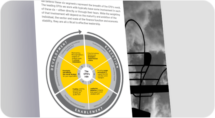 The CFO’s role We believe these six segments represent the breadth of the CFO’s remit. The leading CFOs we work with typically have some involvement in each of these six − either directly or through their team. While the weighting of that involvement will depend on the maturity and ambition of the individual, the sector and scale of the finance function and economic stability, they are all critical to effective leadership. l a n r e T t r x u e s T t e i h n t g o t E N t e h c e g n a n i l u X E t p a t m c e b i k n r e E M u a r P m m s C m Representing Ensuring business o O C the organization’s decisions are U L progress on grounded in T strategic goals sound financial E to external criteria I y stakeholders O V g e t N a E r 1 t 6 P s r s o D s Developing Providing insight v e The id n i si and defining and analysis to n ub the overall strategy 5 CFO’s 2 support the CEO ni g g for your organization role and other senior s nipole 4 managers thgi veD 3 Funding, enabling Leading key and executing initiatives in finance F strategy set that support overall u by the CEO strategic goals n d r i n e g d r o o r g n i a n e i s z u a o t h i o r n u a o l y s t g r a n t i e t g t y e E G NABLEMENT