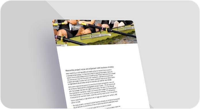 Measuring project value and alignment with business strategy When examining an existing portfolio of projects, either for the first time or as part of a standard review process, it is important to identify inappropriate projects that do not support the corporate strategy and are not adding value. These projects are at an increased risk of failure and may limit the capital that is available to undertake more appropriate projects with higher inventive merit and reward. Investment resources are always limited, so organizations should always be keen to overcome such potential value leakage. While some organizations excel in the execution of project management, many still do not have a mature portfolio management process in place — this can cause issues with the strategic alignment of programs and projects. The result is that although the organization may deliver projects on time and within budget, the value delivered from those projects is not aligned to the organization’s strategy. This represents a misallocation of investment capital, essentially wasting project money in the portfolio. Typical issues faced by organizations who struggle with keeping their portfolio under control include: • Too many projects running at the same time that ultimately do not deliver the expected results because of a lack of focus or lack of select resources and underperformance • Strategic objectives that are not supported by a project or program • Wasted investment in a project or program that is not aligned to strategic objectives Leading practices leverage project portfolio management tools, processes and techniques to assist organizations in balancing their portfolio of projects. When analyzing a portfolio, examining multiple metrics within financial, benefit, status, alignment and economic value areas is advised. In this manner, management has a more effective decision criteria in determining whether a project should be stopped, accelerated, monitored as it is executed, or evaluated to improve value and achieve strategic goals. Project portfolio analysis EY’s toolset assists in identifying those projects in the portfolio that should be continued and accelerated. Importantly, it also identifies those projects that are candidates to be stopped, freeing up capital and skilled resources for more important initiatives. A B C Accelerate Monitor P alue Q E F For more information on how portfolio management onomic v X can unlock the value of your c G Stop K E program investment, please Evaluate Must-do H J see our Portfolio management L Y transformation report. ey.com/portfoliomanage Strategic alignment Unlocking the value of your program investments | 5