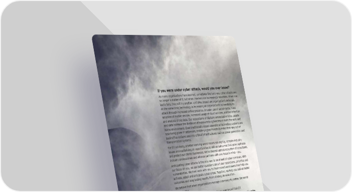 If you were under cyber attack, would you ever know? As many organizations have learned, sometimes the hard way, cyber attacks are no longer a matter of if, but when. Hackers are increasingly relentless. When one tactic fails, they will try another, until they breach an organization’s defenses. At the same time, technology is increasing an organization’s vulnerability to attack through increased online presence, broader use of social media, mass adoption of mobile devices, increased usage of cloud services, and the collection and analysis of big data. Our ecosystems of digitally connected entities, people and data increase the likelihood of exposure to cybercrime in both the work and home environment. Even traditionally closed operational technology systems are now being given IP addresses, enabling cyber threats to make their way out of back-office systems and into critical infrastructures such as power generation and transportation systems. For EY Advisory, a better working world means solving big, complex industry issues and capitalizing on opportunities to deliver outcomes that grow, optimize and protect our clients’ businesses. We’ve shaped a global ecosystem of consultants, industry professionals and alliance partners with one focus in mind — you. Anticipating cyber attacks is the only way to be ahead of cyber criminals. With our focus on you, we ask better questions about your operations, priorities and vulnerabilities. We then work with you to find innovative answers that help you activate, adapt and anticipate cyber crime. Together, we help you deliver better outcomes and long-lasting results, from strategy to execution. We believe that when organizations manage cybersecurity better, the world works better. So, if you were under cyber attack, would you ever know? Ask EY. The better the question. The better the answer. The better the world works. Using cyber analytics to help you get on top of cybercrime — Third-generation Security Operations Centers | 17