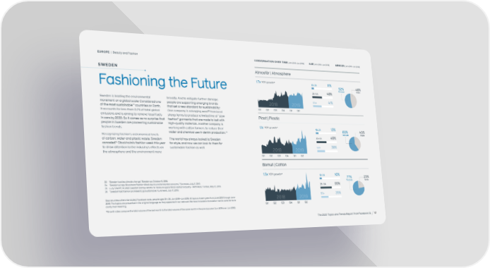 EUROPE | Beauty and Fashion CONVERSATION OVER TIME (Jan 2018–Jun 2019) AGE (Jan 2018–Jun 2019) GENDER (Jan 2018–Jun 2019) SWEDEN Atmosfär | Atmosphere 1.7x YOY growth* 18-34 11% 52% 48% Fashioning the Future Female Male 35-54 48% Sweden is leading the environmental broadly. And to mitigate further damage, 2018 2019 55+ 41% movement on a global scale: Considered one people are supporting emerging brands 33 of the most sustainable countries on Earth, that set a new standard for sustainability: Q1 Q2 Q3 Q4 Q1 Q2 35 it accounts for less than 0.2% of total global One company is salvaging wool from local emissions and is aiming to remove fossil fuels sheep farms to produce a limited line of “slow Plast | Plastic in cars by 2030. So it comes as no surprise that fashion” garments that are made to last with people in Sweden are pioneering sustainable high-quality materials. Another company is fashion trends. working with cotton farmers to reduce their 1.1x YOY growth* 18-34 13% 36 60% 40% water and chemical use in denim production. Female Male Recognizing fashion’s astronomical levels 35-54 49% of carbon, water and plastic waste, Sweden The world has always looked to Sweden 34 canceled Stockholm’s fashion week this year for style, and now we can look to them for to draw attention to the industry’s effects on sustainable fashion as well. 2018 2019 55+ 38% the atmosphere and the environment more Q1 Q2 Q3 Q4 Q1 Q2 Bomull | Cotton 1.5x YOY growth* 18-34 10% 33 “Sweden tackles climate change,” Sweden.se, October 5, 2018. 77% 23% Female Male 34 “Sweden scraps Stockholm Fashion Week due to environmental concerns,” Euronews, July 3, 2019. 35-54 55% 35 Lucy Sheriff, “A Small Swedish Startup Wants To Tackle A Hypocritical Fashion Industry - With Wool,” Forbes, May 13, 2019. 36 “Swedish fast fashion promises to go sustainable,” Euronews, July 11, 2019. 55+ 35% Source unless otherwise stated: Facebook data, people ages 18+, SE, Jan 2018–Jun 2019. All topics chosen grew from June 2018 through June 2018 2019 2019. The topics are presented in the original language as they appeared in our data set. We have included a translation next to some terms to clarify their meaning. Q1 Q2 Q3 Q4 Q1 Q2 *Growth rates compare the total volume of the last month to the total volume of the same month in the previous year (Jun 2019 over Jun 2018). The 2020 Topics and Trends Report From Facebook IQ 17