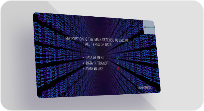 USEncryption - Pitch Deck Page 3 Page 5ENCRYPTION IS THE MAIN DEFENSE TO SECURE ALL TYPES OF DATA: • DATA AT REST ✓ • DATA IN TRANSIT ✓ • DATA IN USE x CONFIDENTIAL 4