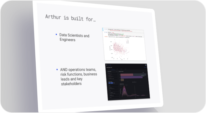 Arthur is built for… • Data Scientists and Engineers • AND operations teams, risk functions, business leads and key stakeholders Arthur AI Page 9 Page 11