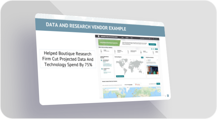 DATA AND RESEARCH VENDOR EXAMPLE Helped Boutique Research Firm Cut Projected Data And Technology Spend By 75% 9 Knoema Page 8 Page 10