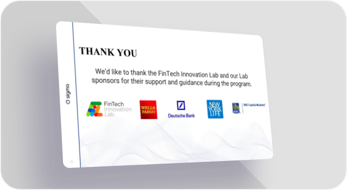 THANK YOU We’d like to thank the FinTech Innovation Lab and our Lab sponsors for their support and guidance during the program. 12 Sigma Page 11 Page 13