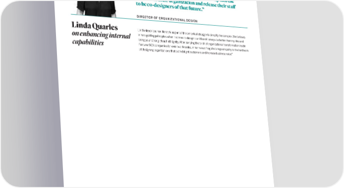 “Many businesses focus on short-term results, but businesses engaging with design are daring to invent a different future—and they are able to tap into the wisdom in their organization and release their staff to be co-designers of that future.” DIRECTOR OF ORGANIZATIONAL DESIGN Linda Quarles Linda describes her life work as part of the perpetual struggle to simplify the complex. She believes on enhancing internal in two guiding principles when it comes to design: our idea will always be better than my idea and bring your strong ideas held lightly. After carrying the torch of organizational transformation inside capabilities Fortune 500 companies for over two decades, in her role at frog she brings empathy to the hard work of designing organizations that both delight customers and increase business value.” BUSINESS VALUE OF DESIGN frogdesign.com | 13