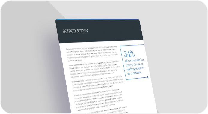 INTRODUCTION Content consumption habits among buyers continue to shift, and while buying cycles have grown longer and more complex, buyers—like marketers—have less time to devote to researching purchases than in the past. More than one- third of buyers strongly agreed they have fewer hours in the day to read up on 34% potential purchases. It’s no surprise that shorter formats, on-demand and bundled content, mobile- of buyers have less friendly formats and visual and interactive content top their list of preferred time to devote to content assets with what little time they can carve out. Buyers are also inclined to check trustworthiness of sources, and analyst reports and third-party reading/research independent content are preferred by a wide margin among buyers. on purchases. Given their limited timeframe for doing research, buyers want to get right to the meat of content assets that will help them most in their journey. When we asked what type of content they want, prescriptive content that lays out a formula for success was the most popular type of content among buyers. In addition, this year, case studies led the pack in terms of the content format that resonates strongest with buyers. They’ve signaled their hunger to benchmark their own experiences against others who’ve tackled similar challenges. An overall desire for more data and benchmarking research also resonated strongly in terms of buyers’ recommendations for content improvement, all tying back to the time-starved challenges. Influencer content has also become of paramount importance; 87% of survey respondents said they give more credence to industry influencer content. Hand in hand with that, buyers also indicated they give more credence to peer reviews, third-party publications and user-generated feedback; more than two- thirds (68%) of buyers said they frequently give credence to peer reviews and user-generated feedback, while 60% give credence to content authored by a third-party publication or analyst. 2017 Content Preferences Survey Report • 2