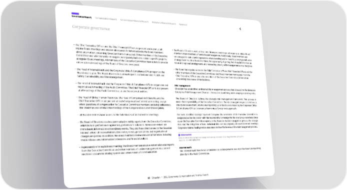 – the Chief Executive Officer and the Chief Financial Officer are present and report at all regular Board meetings and answer all requests for information by the Board members about any matter concerning Givaudan that is transacted. Other members of the Executive Committee and selected senior managers are regularly invited to address specific projects at regular Board meetings. All members of the Executive Committee have a duty to provide information at meetings of the Board of Directors on request – the Head of Internal Audit and the Corporate Ethics & Compliance Officer report to the Board once a year. The Board also receives annual reports on Environment, Health and Safety, Sustainability and Risk Management – the Head of Internal Audit and the Corporate Ethics & Compliance Officer are present and report at each meeting of the Audit Committee. The Chief Financial Officer is also present at all meetings of the Audit Committee, as are the external auditors – the Head of Global Human Resources, the Head of Compensation & Benefits and the Chief Executive Officer are present at each Compensation Committee meeting, except when questions of compensation for Executive Committee members are being deliberated. The Chairman also attends the meetings of the Compensation Committee regularly – all Board members have access to the full minutes of all Committee meetings – the Board of Directors receives summarised monthly reports from the Executive Committee, which include performance against key performance indicators. All Board members are immediately informed on extraordinary events. They also have direct access to the Givaudan intranet where all internal information on key events, presentations and organisational changes are posted. In addition, the Board members receive relevant information, including media releases and information to investors and financial analysts – in preparation for each Board meeting, the Board members receive information and reports from the Executive Committee and other members of senior management via a secure electronic document sharing system and other means of communication – the Board of Directors visits at least one Givaudan country operation per year, where Board members meet members of senior local management. Additionally, Board members are encouraged to visit country operations when travelling and to meet local and regional senior management to allow Board members the opportunity of getting first-hand information on local and regional developments and interacting directly with management across the globe – the Board has regular access to the Chief Executive Officer, Chief Financial Officer and the other members of the Executive Committee. Any Board member may request from the Chief Executive Officer and other members of the Executive Committee information concerning the course of the business. Risk management Givaudan has established an internal risk management process that is based on the Givaudan Enterprise Risk Management Charter. It focuses on identifying and managing/exploiting risks. The Board of Directors defines the strategic risk management framework. This process is under the responsibility of the Executive Committee. The risk management process follows a structured assessment, review and reporting cycle that is coordinated by the Corporate Ethics & Compliance Officer to ensure a harmonised Group-wide approach. For each identified strategic top-level Company risk a member of the Executive Committee is designated as the risk owner with the responsibility to manage the risk on a Group-wide basis. Once a year the Executive Committee reports to the Board on the risk management process, the strategic risks and the mitigation actions. Individual risks are also regularly discussed in Board meetings. Corporate Internal Audit provides assurance on the effectiveness of the risk management process. READ MORE Detailed information on how we manage risks and opportunities: 2021 Integrated Annual Report ▸ pages 30–31 ▸ Managing risks Internal audit The Internal Audit function is established as an independent and objective function reporting directly to the Audit Committee. Corporate governance Governance Report Compensation Report Consolidated Financial Report Statutory Financial Report Appendix 15 Givaudan — 2021 Governance, Compensation and Financial Report