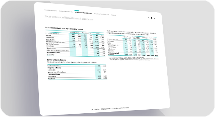 Reconciliation table to Group’s operating income Fragrance & Beauty Taste & Wellbeing Group in millions of Swiss francs 2021 2020 2021 2020 2021 2020 EBITDA 696 677 786 720 1,482 1,397 Depreciation (83) (77) (121) (124) (204) (201) Amortisation (65) (64) (121) (123) (186) (187) Impairment of long-lived assets (1) (2) (13) (3) (13) Operating income 547 536 542 460 1,089 996 as % of sales 1 7. 7 % 18.4% 15.1% 13.5% 16.3% 15.8% Financing costs (94) (86) Other financial income (expense), net (30) (34) Income before taxes 965 876 as % of sales 14.4% 13.9% Entity-wide disclosures The breakdown of sales from the major group of similar products is as follows: in millions of Swiss francs 2021 2020 Fragrance & Beauty Compounds 2,640 2,529 Ingredients and Active Beauty 451 395 Taste & Wellbeing Compounds 3,593 3,398 Total sales 6,684 6,322 The Group operates in a number of geographical areas: Switzerland (country of domicile); Europe, Africa and Middle-East; North America; Latin America; and Asia Pacific. in millions of Swiss francs Fragrance & Beauty Segment sales a Taste & Wellbeing Segment sales a Group Segment sales a Group Non-current assets b 2021 2020 2021 2020 2021 2020 2021 2020 Switzerland 47 35 33 33 80 68 1,603 1,496 Europe 977 882 870 833 1,847 1,715 2,510 2,453 Africa and Middle-East 273 255 249 240 522 495 79 81 North America 627 618 1,197 1,150 1,824 1,768 1,929 1,720 Latin America 370 359 354 315 724 674 220 211 Asia Pacific 797 775 890 827 1,687 1,602 840 839 Total geographical segments 3,091 2,924 3,593 3,398 6,684 6,322 7, 1 8 1 6,800 a) Segment sales are revenues from external customers and are shown by destination. b) Non-current assets other than financial instruments, deferred tax assets, post-employment benefit assets. They consist of property, plant and equipment, intangible assets and investments in jointly controlled entities. 71 Givaudan — 2021 Governance, Compensation and Financial Report Governance Report Compensation Report Consolidated Financial Report Statutory Financial Report Appendix Notes to the consolidated financial statements