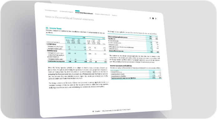 16. Income Taxes Amounts charged to (credited in) the consolidated statement of comprehensive income are as follows: in millions of Swiss francs 2021 2020 Income state - ment Other compre - hensive income Own equity instru - ments Tot al Income state - ment Other compre - hensive income Own equity instru - ments Tot al Current taxes - in respect of current year 191 2 193 176 (3) 173 - in respect of prior years (4) (4) (6) (6) Deferred taxes - in respect of current year (50) 46 (4) (36) (1) (37) - reclassified from equity to income statement - in respect of prior years 7 (2) 5 (1) (1) Total income tax expense 144 46 190 133 (4) 129 Since the Group operates globally, it is subject to income taxes in many different tax jurisdictions. As such, in determining the provision for income taxes, judgment is required as there are transactions for which the ultimate tax determination is uncertain at the time of preparing the financial statements. As a result, any differences between the final tax outcome and the amounts that were initially recorded impact the current and deferred taxes in the period in which such final determinations are made. The Group calculates on the basis of the income statement its average applicable tax rate as a weighted average of the tax rates in the tax jurisdictions in which the Group operates, including research tax credits and withholding tax on dividends, interest and royalties. The Group’s average applicable tax rate differs from the Group’s effective tax rate as follows: 2021 2020 Group's average applicable tax rate 14% 16% Tax effect of Income not taxable (4%) (3%) Expenses not deductible 5% 2% Change in tax rate 1% 1% Other adjustments of income taxes of prior years (2%) (1%) Other differences 1% – Group's effective tax rate 15% 15% The variation in the Group’s average applicable tax rate arises due to changes in the composition of the Group’s profitability within the Group’s subsidiaries, in accordance with the Group’s business profile in terms of geographical presence, product mix and customer portfolio, as well as external factors related to changes in local statutory tax rates. Income tax assets and liabilities Amounts recognised in the statement of financial position related to income taxes are as follows: As at 31 December in millions of Swiss francs 2021 2020 Current income tax assets 57 66 Current income tax liabilities (188) (157) Total net current income tax asset (liability) (131) (91) Governance Report Compensation Report Consolidated Financial Report Statutory Financial Report Appendix 79 Givaudan — 2021 Governance, Compensation and Financial Report Notes to the consolidated financial statements