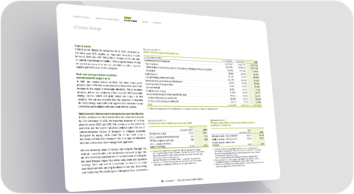 A year in review Economic / Governance Environment Social Appendix Climate change Capital goods Disclosure 305 – 3 Capital goods figures increased by 8% in 2021 compared to Other indirect (scope 3) GHG emissions the base year 2015 despite an important reduction of 23% GHG emissions (tonnes) 2015 (restated) 2020(restated) 2021 between 2020 and 2021. This reflects changes in the amount Purchased good and services 1,917,037 1,901,374 1,902,794 of capital expenditure modelled. With a spend-based model Raw materials 1,691,701 1,676,242 1,677,400 on secondary data, it is not yet possible to reflect specific Other Indirect materials & services categories (excluding existing categories) ¹ 146,856 132,686 133,055 supplier performances in this category. Packaging 78,480 92,446 92,339 Fuel- and energy-related activities Capital goods ¹ 51,722 72,797 56,003 (not included in scope 1 or 2) Fuel and energy related activities 105,744 68,001 36,349 Upstream transportation and distribution 29,674 42,320 39,990 In fuel- and energy-related activities, we have made good Waste generated in operations 19,321 22,644 24,084 progress since 2015 with an absolute reduction of 66% due to the Business travel 24,461 12,587 1,794 increase in the supply of renewable electricity. This is excellent Employee commuting 21,516 20,454 13,277 progress, and we are continuing efforts to reach 100% renewable Downstream transportation and distribution 54,615 56,099 65,297 energy sources, which will again reduce our scope 3 in this Outbound product to customers 39,503 38,172 42,343 category. We can also mention that the reduction of intensive Outbound intercompany deliveries 15,112 17,927 22,954 electricity energy sources like coal supports the reduction of scope Total 2,224,090 2,196,276 2,139,587 3 emissions and is aligned with our overall climate journey. 1. These two categories do not include data for the recent acquisitions of Naturex, Vika and drom. Upstream and downstream transportation and distribution In 2021, we increased the total absolute emissions for transport by 25% compared to 2015. An important increase of 7% took Disclosure 305 – 6 Disclosure 305 – 7 place between 2020 and 2021. This is related to the COVID-19 Emissions of ozone-depleting substances (ODS) Nitrogen oxides (NOX), sulphur oxides (SO₂), and other pandemic and the logistics situation, which required the use of significant air emissions 2020 carbon-intensive modes of transport to mitigate potential (restated in 2021) ¹ 2021 ² 2020 disruption in supply. With about 5% of our total scope 3 CFC inventory (kg) 7,639 3,881 (restated in 2021) ¹ 2021 ² emissions coming from transport, this is a topic we integrate CFC 11 equivalent inventory (kg) 783 574 Nitrogen oxides – NOₓ (tonnes) ³ 66.71 69.28 into our carbon reduction management approach. CFC loss-replacement (kg) 765 526 Sulphur dioxide – SO₂ (tonnes) ³ 96.84 98.37 CFC 11 equivalent loss/ Volatile organic compounds We are assessing ways to reduce our footprint through, for replacement (kg) 42.08 28.91 (tonnes) 1,018 1,069 example, consolidation and distribution network design. We 1. Assured 12-month rolling figures (Q4 2019 to Q3 2020) for values 1. Assured 12-month rolling figures (Q4 2019 to Q3 2020) for values are also assessing opportunities to switch modes of transport, excluding the acquisitions of Naturex, Vika and drom sites. These latter excluding the acquisitions of Naturex, Vika and drom sites. These latter figures have been included in the reported values, but have not been figures have been included in the reported values, but have not been but such changes impact the whole value chain and operation assured by the third-party auditor. assured by the third-party auditor. strategy. Time and careful assessment are needed to make See the "Restatements of information" section for restatements. See the "Restatements of information" section for restatements. 2. Assured 12-month rolling figures (Q4 2020 to Q3 2021) for values 2. Assured 12-month rolling figures (Q4 2020 to Q3 2021) for values sure improvements are implemented to last and show long- including the acquisitions of Naturex, Vika and drom sites. including the acquisitions of Naturex, Vika and drom sites. 3. Q uantity is calculated by multiplying the annual fuel consumption by the term reduction. The challenge is to integrate these actions into corresponding emission factor for fuel type. 60 Givaudan — 2021 GRI Sustainability Report