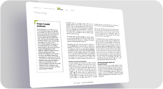 A year in review Economic / Governance Environment Social Appendix Climate change Renewable carbon is all carbon sources that avoid or innovative processes, we also look at how we can reuse and Scope 3 model substitute the use of any additional fossil carbon from the recover process & waste side streams (upcycling). geosphere. Plants do this naturally and some technologies are evolution now able to do so as well. By increasing the use of renewable One excellent example is that of previously discarded solvents carbon, we drastically reduce the extraction of carbon from and oils that are now being reused in future production The modelling of scope 3 GHG emissions is the ground and limit the increase of CO₂ concentration in the stages. The project had an impressive impact, upcycling an iterative process based on science that atmosphere. This is well aligned with our journey towards 200,000 kg of solvent/oil in a 12 -month period, saving costs is still evolving. We started our efforts here nature-conscious creations. on raw materials and waste disposal fees and saving in 2017 with our first full scope 3 inventory 108 metric tonnes of carbon dioxide. based on financial activity data (input/ We employ green chemistry principles for efficient carbon output model) using the so-called ESHER use, meaning that all carbon atoms in the bio-based starting In designing innovative processes, we also look at how we can model. The model has since gone through material end up in the final product, resulting in zero carbon reuse and recover process side streams. By following green several evolutionary steps. We have begun waste and thus limiting carbon emissions. chemistry principles, we ensure ingredients are safe by design modelling our raw material with a and that our processes make efficient use of energy and process-based approach that applies the Biotechnology also holds enormous potential for carving out a materials while reducing water consumption and waste. As best available proxy data from verified more sustainable future for perfumery and for our planet. At an example, our latest sustainable ingredient is KoffeeUp™, a generic databases. We add granularity and Givaudan, it has already led to some extraordinary innovations. beauty oil crafted from upcycled Arabica coffee. KoffeeUp™ accuracy through the inclusion of For example, we can now use green chemistry including a has been called the “new argan oil” in the beauty industry additional packaging categories and new biotransformation step to produce the biodegradable ingredient because of its natural, eco-conscious and effective properties, classes of business travel. These Ambrofix®, an iconic molecule in perfumery, from sustainably which bring facial skin care benefits such as hydration, modifications imply potentially important sourced sugar. This results in 100% renewable carbon, in line with protection and anti-aging to customers. The product was increases or decreases in the data and our FiveCarbon Path™, the new Givaudan sustainability ambition developed in collaboration with Danish company Kaffe Bueno, modelling of our scope 3 emissions. This is for molecules, and uses 100 times less land compared to the a biotech start-up at MassChallenge Switzerland. This a necessary part of the journey and we will traditional production method starting from the clary sage plant. groundbreaking ‘upcycling’ approach helps us to reduce recalculate our baseline accordingly, as waste and minimise our environmental impact. required by GHG protocol to ensure Driving circularity and upcycling progress is diligently reported. We actively Upcycled materials are in essence low-carbon materials Optimising packaging, logistics and advocate for more transparency and because they are considered to be valorised waste streams. transport of goods alignment in this area by participating in With an allocation system based on value, the waste streams Packaging is a focus for many companies, including Givaudan, several relevant initiatives. are almost carbon-neutral materials and valorising them into and we work to reduce the impact of packaging on our CO₂e new products is beneficial: it both reduces the carbon footprint through several approaches. We plan to bring more footprint of our products and increases circularity in our circularity in our packaging, to use more renewable solutions, supply chain and reduces waste. This well-known practice to work on making packaging lighter and optimising it for has been applied for years in the industry because the same transport solutions, and to investigate reusable and recyclable principle applies to reducing costs and lowering stress on solutions, all while keeping safety and regulatory considerations scarce resources or unstable supply chains. In designing a top priority. 57 Givaudan — 2021 GRI Sustainability Report