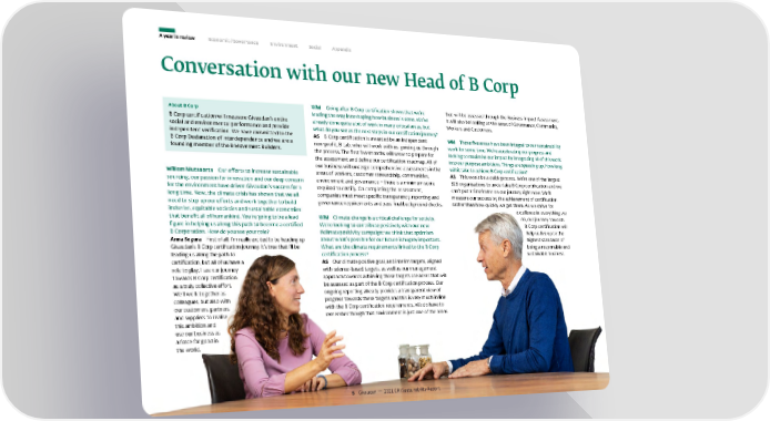 A year in review Economic / Governance Environment Social Appendix Conversation with our new Head of B Corp WM Going after B Corp certification shows that we’re that will be assessed through the Business Impact Assessment. About B Corp leading the way in reshaping how business is done. We’ve It will also be looking at the areas of Governance, Community, B Corp certification will measure Givaudan’s entire already done quite a bit of work in many critical areas, but Workers and Customers. social and environmental performance and provide what do you see as the next steps in our certification journey? independent verification. We have committed to the AS B Corp certification is awarded by an independent WM Those five areas have been integral to our sustainability B Corp Declaration of Interdependence and we are a non-profit, B Lab, who will work with us, guiding us through work for some time. We’re accelerating our progress and founding member of the B Movement Builders. the process. The first few months will serve to prepare for looking to maximise our impact by integrating all of this work the assessment and define our certification roadmap. All of into our purpose ambitions. Things are speeding up. How long our business will undergo comprehensive assessments in the will it take to achieve B Corp certification? Willem Mutsaerts Our efforts to increase sustainable areas of workers, customer stewardship, communities, AS This won’t be a quick process. We’re one of the largest sourcing, our passion for innovation and our deep concern environment and governance – there is a minimum score B2B organisations to undertake B Corp certification and we for the environment have driven Givaudan’s success for a required to certify. On completing the assessment, can’t put a timeframe on our journey right now. We’ll long time. Now, the climate crisis has shown that we all companies must meet specific transparency, reporting and measure our success by the achievement of certification need to step up our efforts and work together to build governance requirements and pass final background checks. rather than how quickly we get there. As we strive for inclusive, equitable societies and sustainable economies excellence in everything we that benefit all of humankind. You’re going to be a lead WM Climate change is a critical challenge for society. do, our journey towards figure in helping us along this path to become a certified We’re looking to contribute positively with our new B Corp certification will B Corporation. How do you see your role? #climatepositivity campaign: we think that optimism help us live up to the Anna Segura First of all, I’m really excited to be heading up about what’s possible for our future is hugely important. highest standards of Givaudan’s B Corp certification journey. It’s true that I’ll be What are the climate requirements linked to the B Corp being a responsible and leading us along the path to certification process? sustainable business. certification, but all of us have a AS Our climate positive goal, and interim targets, aligned role to play. I see our journey with science-based targets, as well as our management towards B Corp certification approach towards achieving those targets are areas that will as a truly collective effort. be assessed as part of the B Corp certification process. Our We’ll work together as ongoing reporting already provides a transparent view of colleagues, but also with progress towards these targets and this is very much in line our customers, partners with the B Corp certification requirements. We do have to and suppliers to realise remember though that Environment is just one of the areas this ambition and use our business as a force for good in the world. 5 Givaudan — 2021 GRI Sustainability Report
