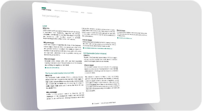 A year in review Economic / Governance Environment Social Appendix Key partnerships UEBT many positive initiatives and interventions within its vanilla How we engage What it is supply chain in the country, it also makes sense to work with Givaudan has been engaged as an advisory board member with UEBT is a non-profit association that promotes ethical sourcing industry peers to ensure an aligned approach on issues such two seats since July 2021. We are also participating in different of ingredients from biodiversity, supporting and verifying as traceability, deforestation and the professionalisation of working groups. companies’ commitment to sourcing with respect for people the vanilla industry. renewable-carbon-initiative.com and biodiversity. UEBT members commit to gradually implementing practices defined in the UEBT standard. How we engage Givaudan has been represented on the SVI Steering Committee Why we engage since 2017, with meetings generally on a monthly basis. We are UEBT has a depth of experience in many of the fragrance also involved in the whole member forums as well. related supply chains in which we operate and offers tools www.idhsustainabletrade.com/sustainable-vanilla-initiative-svi and guidance on how to navigate the challenges therein. A number of our customers work very closely with UEBT, so it is an important stakeholder in our responsible sourcing and RCI (Renewable Carbon Initiative) biodiversity programmes. What it is The aim of the Renewable Carbon Initiative (RCI) is to support How we engage and speed up the transition from fossil carbon to renewable Givaudan works closely with UEBT, and their responsible carbon for all organic chemicals and materials. sourcing standard is one of the protocols we use for assessing and verifying our suppliers at farm level. Why we engage www.ethicalbiotrade.org We reconsider carbons from waste (recycled, CO2 or biomass based) as a new source of building blocks for new materials, which should be in the longer term be recognised as renewable The Sustainable Vanilla Initiative (SVI) a source of carbon. What it is The Sustainable Vanilla Initiative (SVI) is a voluntary industry This initiative is expected to help us create cross-industry initiative that aims to promote the long-term stable supply of platforms that will demonstrate the feasibility of renewable high-quality, natural vanilla produced in a socially, environmentally carbon in tangible activities; advocate for legislation, taxation and economically sustainable way. It is made up of a range of and regulation changes to give renewable carbon an adequate vanilla supply chain actors and is run by the NGOs IDH and commercial playing field to play on; and create a wider pull for Sustainable Food. sustainable options by raising awareness and understanding of renewable carbon level amongst the business community and Why we engage the wider public. Vanilla is a key product sourced by Givaudan, and the challenges of the Madagascan market and environment around it are well known. Although Givaudan undertakes 25 Givaudan — 2021 GRI Sustainability Report