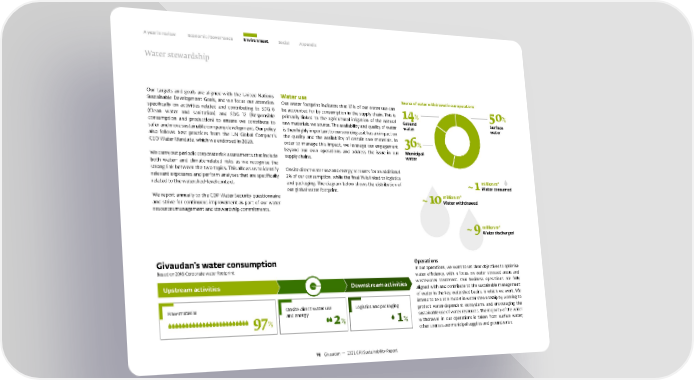 A year in review Economic / Governance Environment Social Appendix Water stewardship Our targets and goals are aligned with the United Nations Water use Source of water withdrawal in our operations Sustainable Development Goals, and we focus our attention Our water footprint indicates that 97% of our water use can specifically on activities related and contributing to SDG 6 be accounted for by consumption in the supply chain. This is 14% 50% (Clean water and sanitation) and SDG 12 (Responsible primarily linked to the agricultural irrigation of the natural Ground Surface consumption and production) to ensure we contribute to raw materials we source. The availability and quality of water water water safer and more sustainable company development. Our policy is then highly important to our sourcing as it has an impact on also follows best practices from the UN Global Compact’s the quality and the availability of certain raw materials. In 36% CEO Water Mandate, which we endorsed in 2020. order to manage this impact, we leverage our engagement beyond our own operations and address the issue in our Municipal We carry out periodic corporate risk assessments that include supply chains. water both water- and climate-related risks as we recognise the strong link between the two topics. This allows us to identify Onsite direct water use and energy accounts for an additional relevant exposures and perform analyses that are specifically 2% of our consumption, while the final 1% is linked to logistics million m³ related to the watershed-level context. and packaging. The diagram below shows the distribution of 1Water consumed We report annually to the CDP Water Security questionnaire our global water footprint. 10 million m³ ~ and strive for continuous improvement as part of our water ~ Water withdrawed resources management and stewardship commitments. 9million m³ ~ Water discharged Givaudan's water consumption Operations Based on 2018 Corporate water footprint In our operations, we want to set clear objectives to optimise water efficiency, with a focus on water stressed areas and Upstream activities Downstream activities wastewater treatment. Our business operations are fully aligned with and contribute to the sustainable management of water in the key watershed basins in which we work. We intend to be a role model in water stewardship by working to Raw material Onsite direct water use Logistics and packaging protect water-dependent ecosystems and encouraging the 97% and energy 2% 1% sustainable use of water resources. The majority of the water withdrawal in our operations is taken from surface water; other sources are municipal supplies and groundwater. 70 Givaudan — 2021 GRI Sustainability Report