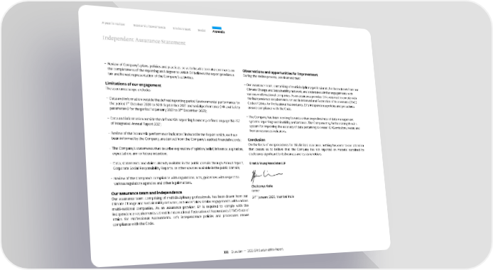 A year in review Economic / Governance Environment Social Appendix Independent Assurance Statement – Review of Company’s plans, policies and practices, so as to be able to make comments on Observations and opportunities for improvement the completeness of the reporting and degree to which EY believes the report provides a During the review process, we observed that: fair and honest representation of the Company’s activities. – Our assurance team, comprising of multidisciplinary professionals, has been drawn from our Limitations of our engagement Climate Change and Sustainability network, and undertakes similar engagements with The assurance scope excludes: various multi-national companies. As an assurance provider, EY is required to comply with the independence requirements set out in International Federation of Accountants (IFAC) – Data and information outside the defined reporting period (environmental performance for Code of Ethics for Professional Accountants. EY’s independence policies and procedures the period 1st October 2020 to 30th September 2021 and social performance (HR and Safety ensure compliance with the Code. parameters) for the period 1st January 2021 to 31st December 2021); – The Company has been working towards enhancing robustness of data management – Data and information outside the defined GRI reporting boundary defined on page 150-157 systems reporting sustainability performance. The Company may further strengthen its of Integrated Annual Report 2021; system for improving the accuracy of data pertaining to overall GHG emissions, water, and human resources indicators. – Review of the ‘economic performance indicators’ included in the Report which, we have been informed by the Company, are derived from the Company’s audited financial records; Conclusion On the basis of our procedures for this limited assurance, nothing has come to our attention – The Company’s statements that describe expression of opinion, belief, inference, aspiration, that causes us to believe that the Company has not reported on material sustainability expectation, aim or future intention; disclosures significant to its business and its stakeholders. – Data, statements and claims already available in the public domain through Annual Report, Ernst & Young Associates LLP Corporate Social Responsibility Reports, or other sources available in the public domain; – Review of the Company’s compliance with regulations, acts, guidelines with respect to various regulatory agencies and other legal matters. Chaitanya Kalia Our assurance team and independence Partner Our assurance team, comprising of multidisciplinary professionals, has been drawn from our 24th January 2022, Mumbai India Climate Change and Sustainability network, and undertakes similar engagements with various multi-national companies. As an assurance provider, EY is required to comply with the independence requirements set out in International Federation of Accountants (IFAC) Code of Ethics for Professional Accountants. EY’s independence policies and procedures ensure compliance with the Code. 131 Givaudan — 2021 GRI Sustainability Report