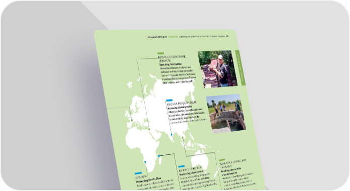BEQAA GOVERNORATE, LEBANON Upscaling fruit leather Givaudan volunteers designed and delivered training to help vulnerable farmers to upscale their dry fruit paste manufacturing process and to improve their business and marketing skills. MADHYA PRADESH, INDIA Accessing drinking water Villagers collecting Boswellia resin used in cosmetics, gain easier and faster access to safe drinking water through the construction of water wells and reservoirs. BANGKOK & CHIANG MAI, THAILAND Smelling courses with visually impaired Hundreds of visually impaired students take part in a pilot course where scented storytelling teaches them to better use olfaction in their everyday life. MOHELI, COMOROS Protecting island nature In areas where ylang ylang grows, Mohéli National Park and village communities are regenerating forests, with the aim of protecting biodiversity. NAMIBIA Preserving Devil’s Claw Devil’s claw is collected wild for use in nutraceuticals and a source of income for Namibian rural communities, who receive training in sustainable harvesting. Support for childcare services is also part of the initiative. Givaudan – 2021 Integrated Annual Report Acting as a force for good Acting as a force for good Co mmunities Su pporting local communities: our work with the Givaudan Foundation 109