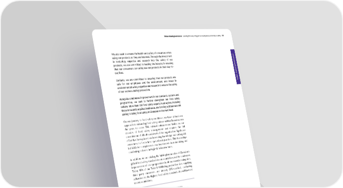 Value-based governance We also seek to ensure the health and safety of consumers when using our products as they are intended. Through the investment in toxicology expertise and research into the safety of our products, we are committed to leading the industry in ensuring that our consumers can safely use our products in their day-to- day lives. Similarly, we are committed to ensuring that our products are safe for our employees and the environment, and invest in environmental safety expertise and research to ensure the safety of our workers during production. Alongside continuous improvement in our standards, systems and programmes, we seek to further strengthen our food safety culture. More than 100 food safety experts in all regions, including those in recently acquired businesses, are forming a global network aiming to bring food safety in Givaudan to the next level. On our journey to food safety excellence, we have defined our approach to enhancing food safety culture within Givaudan over the years to come. This cultural enhancement builds on our decades of food safety management and requires the full commitment of all roles and levels of the organisation. Significant effort has been placed on increasing knowledge and raising risk awareness to foster best operational practices. This leadership- led initiative complements our investments in maintaining and continuing to invest in hygienic infrastructures. In addition, we are driving the full implementation of Givaudan’s global food safety standards in our acquisitions and the continuous improvement of core programmes in all our manufacturing sites. Today, 98% of our Taste & Wellbeing production sites supplying third party customers are already GFSI-certified, confirming adherence to the highest food safety standards also within most recent acquisitions. READ MORE 2021 GRI Sustainability Report ▸ our approach and management ▸ pages 40 and 101 ▸ ‘Product quality & safety and ingredient disclosure’ and ‘Consumer health and wellbeing’ Adhering to the highest food safety standards: 100 % of our Taste & Wellbeing production sites supplying third party customers are GFSI-certified. Givaudan – 2021 Integrated Annual Report Value-based governance Le ading the way in regulatory compliance and product safety 117