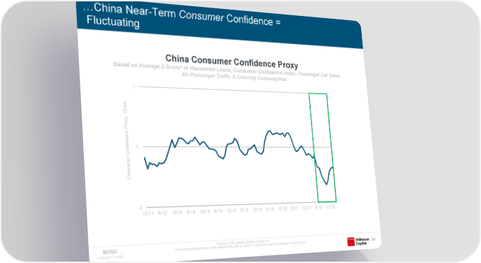 …China Near-Term Consumer Confidence = Fluctuating China Consumer Confidence Proxy Based on Average Z-Score* of Household Loans, Consumer Confidence Index, Passenger Car Sales, Air Passenger Traffic & Catering Consumption 3 na Chi , y ox r P e nc de i 0 Conf er um Cons -3 12/11 6/12 12/12 6/13 12/13 6/14 12/14 6/15 12/15 6/16 12/16 6/17 12/17 6/18 12/18 Source: CEIC, Morgan Stanley Research. *A z-score measures how many standard deviations above or below the historical average a data point is. Internet Trends 296 2019