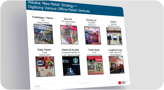 Alibaba ‘New Retail’ Strategy = Digitizing Various Offline Retail Verticals Freshippo / Hema Sun Art Suning JV Intime 135+ 470 Supermarkets Consumer Fashion & Grocery Stores Digitized Electronics Department Stores Easy Home Eleme & Koubei Tmall Store LingShouTong Home On-demand Delivery for Rural 1MM+ Mom-&-Pop Improvement 2,100+ Starbucks Stores Omni-Channel Stores Stores Digitized Source: Company Materials Internet Trends 325 2019