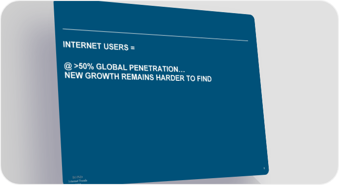 INTERNET USERS = @ >50% GLOBAL PENETRATION… NEW GROWTH REMAINS HARDER TO FIND Internet Trends 6 2019
