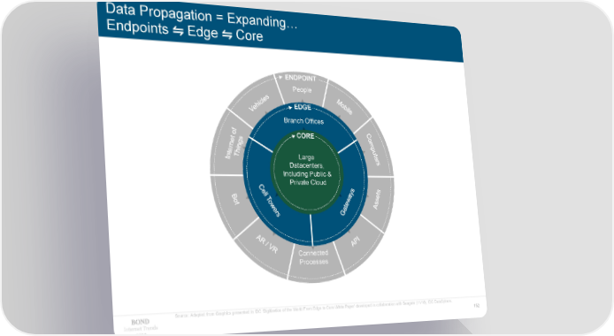 Data Propagation = Expanding… Endpoints ⇋ Edge ⇋Core ENDPOINT People EDGE Branch Offices CORE Large Datacenters, Including Public & Private Cloud Connected Processes Source: Adapted from Graphics presented in IDC ‘Digitization of the World From Edge to Core White Paper’ developed in collaboration with Seagate (11/18), IDC DataSphere. Internet Trends 152 2019