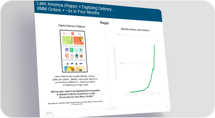 Latin America (Rappi) = Digitizing Delivery… 8MM Orders + ~2x in Four Months Rappi Digital Delivery Platform Monthly Orders, Latin America s10MM on i l l i a M eric m n A ti La , s r de 5MM r O i Rapp y l Latin America has a great delivery culture. nth Cities are chaotic, delivery was super manual & Mo not all stores offered it — there was plenty of inefficiency & high costs. We thought: what if we digitized this ecosystem & started to deliver anything in under 0 30 minutes for less than a dollar? 5/15 5/16 5/17 5/18 5/19 Simon Borrero, Sebastian Meija, Felipe Villanmarin, Andres Bilbao, Guillermo Plaza – Co-Founders, 6/19 Source: Rappi (6/19). Internet Trends 59 2019