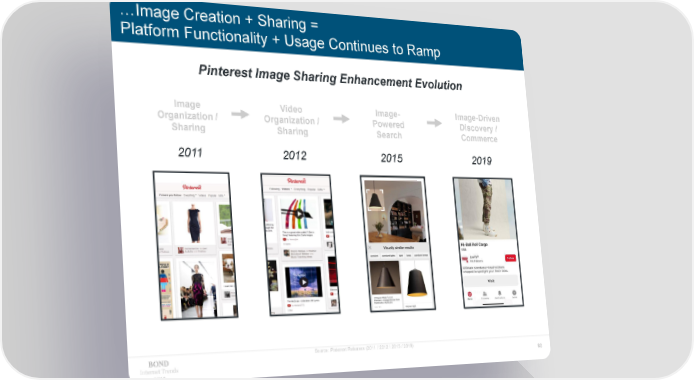 …Image Creation + Sharing = Platform Functionality + Usage Continues to Ramp Pinterest Image Sharing Enhancement Evolution Image Video Image- Image-Driven Organization / Organization / Powered Discovery / Sharing Sharing Search Commerce 2011 2012 2015 2019 Source: Pinterest Releases (2011 / 2012 / 2015 / 2019) Internet Trends 80 2019