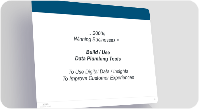 …2000s Winning Businesses = Build / Use Data Plumbing Tools To Use Digital Data / Insights To Improve Customer Experiences Internet Trends 132 2019
