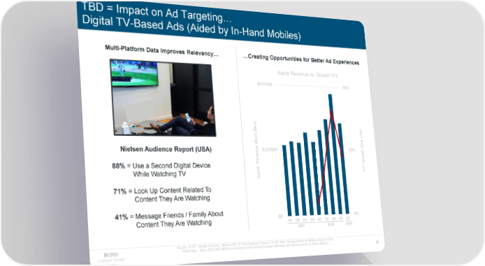 TBD = Impact on Ad Targeting… Digital TV-Based Ads (Aided by In-Hand Mobiles) Multi-Platform Data Improves Relevancy… …Creating Opportunities for Better Ad Experiences Xandr Revenue vs. Growth Y/Y $600MM 60% ) ) ars B ne ue Li l B ( Red Nielsen Audience Report (USA) ue$300MM 30% ( en th ow Rev r G 88% = Use a Second Digital Device dr /Y While Watching TV an Y X 71% = Look Up Content Related To Content They Are Watching 41% = Message Friends / Family About $0 0% Content They Are Watching Q1 Q2 Q3 Q4 Q1 Q2 Q3 Q4 Q1 2017 2018 2019 Source: AT&T / Xandr Releases. Nielsen Q2:18 Total Audience Report (12/18). Note: Survey based on Nielsen National USA Panel data. Note: 2018 USA Mid-term elections drove above-average television advertising spend on Xandr platform. Internet Trends 38 2019