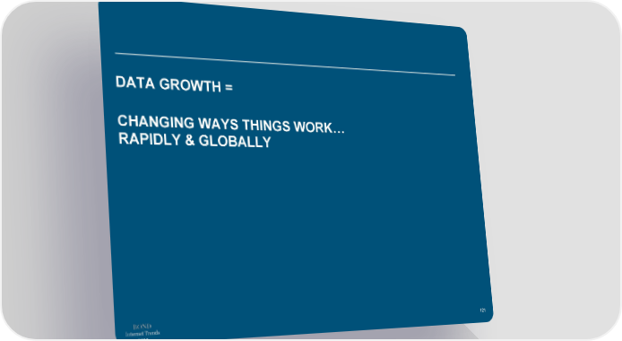 DATA GROWTH = CHANGING WAYS THINGS WORK… RAPIDLY & GLOBALLY Internet Trends 121 2019