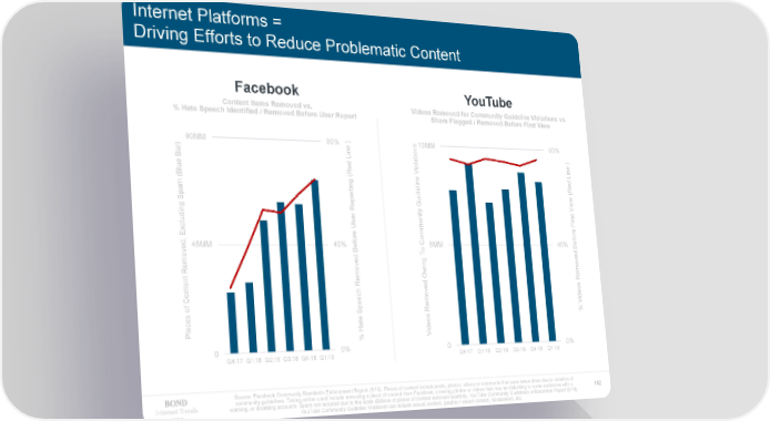 Internet Platforms = Driving Efforts to Reduce Problematic Content Facebook YouTube Content Items Removed vs. Videos Removed for Community Guideline Violations vs. % Hate Speech Identified / Removed Before User Report Share Flagged / Removed Before First View 90MM 80% ) s10MM 80% ar) ne on ) B Li ati ol ne ue i l Red V Li B ( ( ne i m ng l Red ( pa de ui ew S G i ng t V i ty i s er Reporti r ud un i l F c Us m x E ore , 45MM 40% ore Com5MM 40% ef ed ef o B B ov T ed ed ng ov Rem ov i t w O en Rem Rem h ed os Cont ec ov de pe of Rem % Vi es os ec i de P i % Hate S V 0 0% 0 0% Q4:17 Q1:18 Q2:18 Q3:18 Q4:18 Q1:19 Q4:17 Q1:18 Q2:18 Q3:18 Q4:18 Q1:19 Source: Facebook Community Standards Enforcement Report (5/19). Pieces of content include posts, photos, videos or comments that were taken down due to violation of community guidelines. Taking action could include removing a piece of content from Facebook, covering photos or videos that may be disturbing to some audiences with a Internet Trends warning, or disabling accounts. Spam not included due to the scale (Billions of pieces of content removed quarterly. YouTube Community Guidelines enforcement Report (5/19). 182 2019 YouTube Community Guideline Violations can include sexual content, graphic / violent content, harassment, etc.