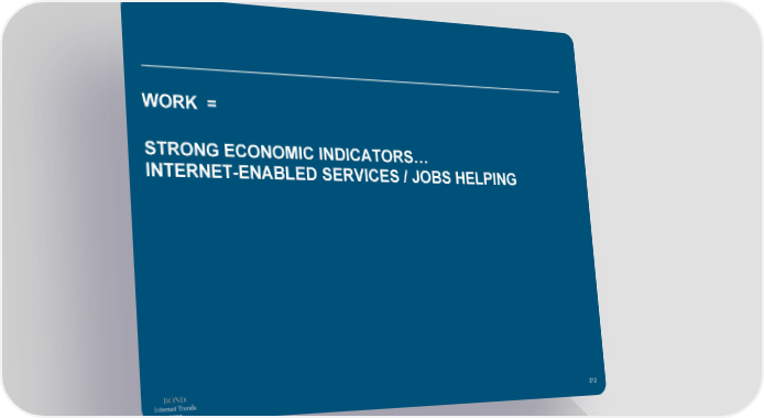 WORK = STRONG ECONOMIC INDICATORS… INTERNET-ENABLED SERVICES / JOBS HELPING Internet Trends 212 2019