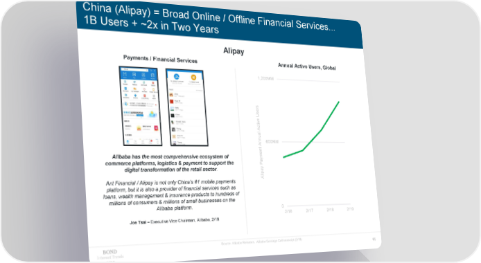 China (Alipay) = Broad Online / Offline Financial Services... 1B Users + ~2x in Two Years Alipay Payments / Financial Services Annual Active Users, Global 1,200MM ers Us e v ti c A l ua nn 600MM A t en Alibaba has the most comprehensive ecosystem of m commerce platforms, logistics & payment to support the ay P digital transformation of the retail sector. y pa i l Ant Financial / Alipay is not only China's #1 mobile payments A platform, but it is also a provider of financial services such as loans, wealth management & insurance products to hundreds of millions of consumers & millions of small businesses on the Alibaba platform. 0 2/16 2/17 2/18 2/19 Joe Tsai – Executive Vice Chairman, Alibaba, 2/18 Source: Alibaba Releases. Alibaba Earnings Call transcript (2/18) Internet Trends 65 2019