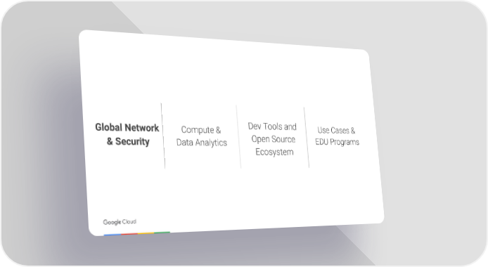 Building and Developing Science Gateways with Google Cloud Platform Page 8 Page 10Dev Tools and Use Cases & Global Network Compute & Open Source EDU Programs & Security Data Analytics Ecosystem